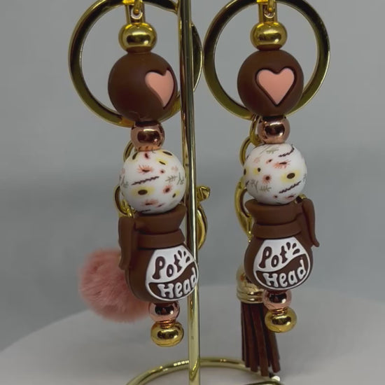 Pot Head Bag Charm / Keychain - Brown, Pink, Gold & Rose Gold