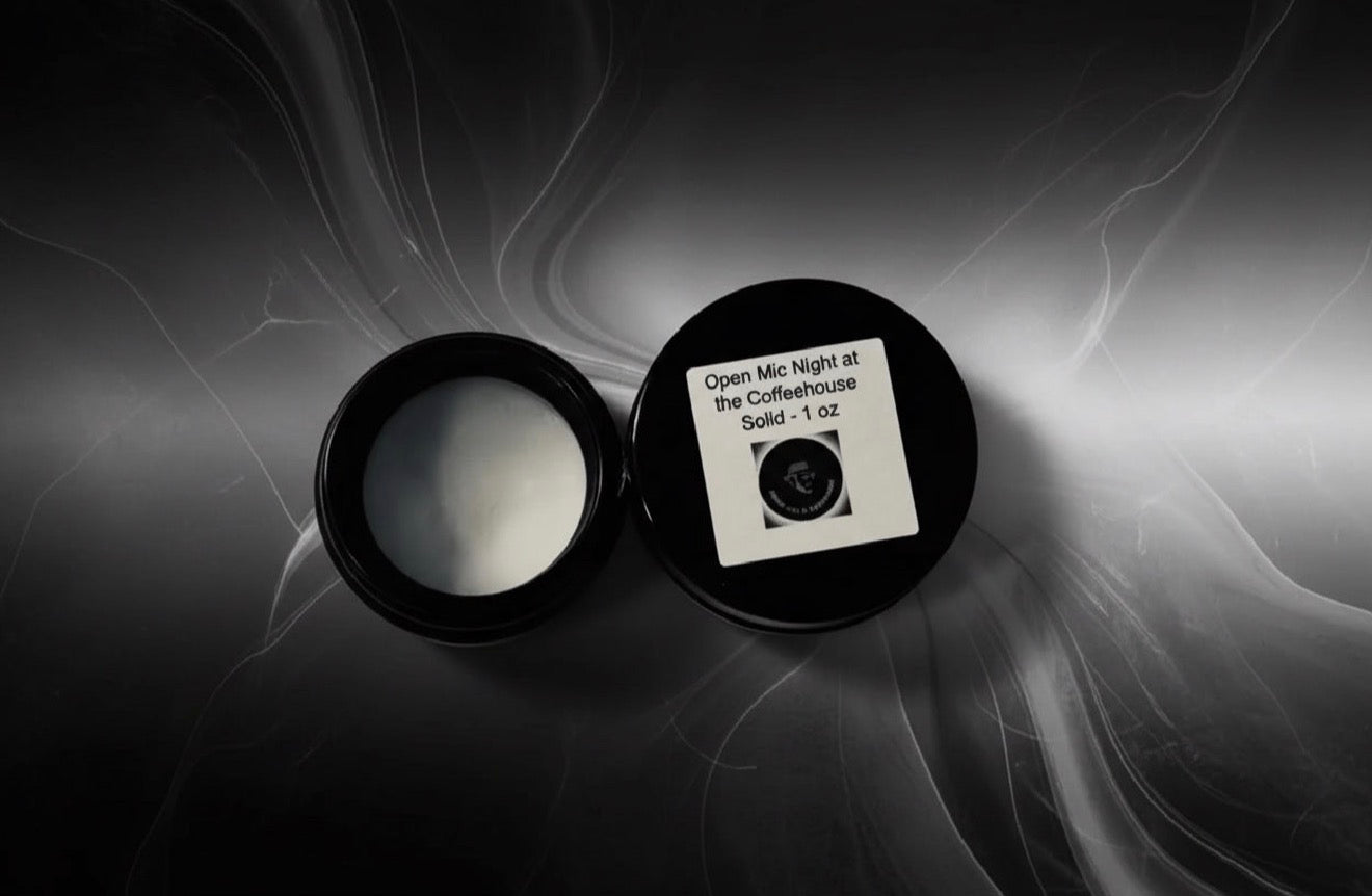 • Open Mic Night at the Coffeehouse 1 oz Solid Perfume: A concentrated solid form of signature roasted coffee, cinnamon, and clove for a lasting fragrance. Pro Tip: Warm a small amount between your fingertips and apply to dry hair to tame unruly flyaways and smooth hair edges.