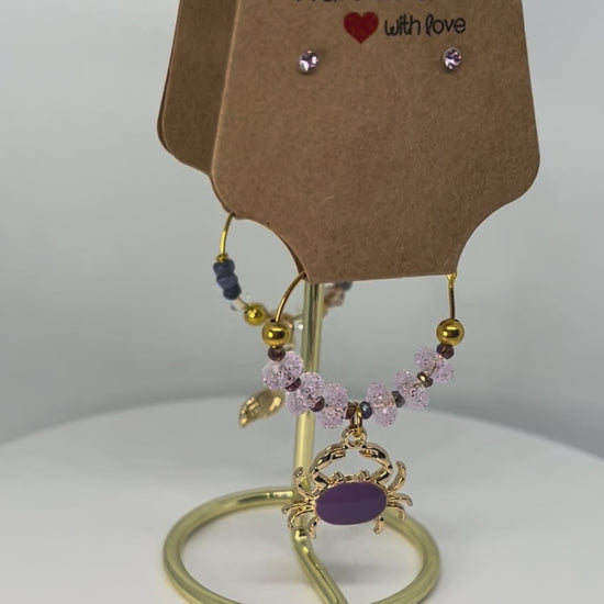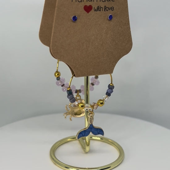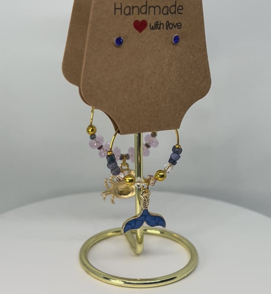 Wine Glass Charm Set - Mermaid Tail & Crab with Bonus Earrings •2 Piece Set!