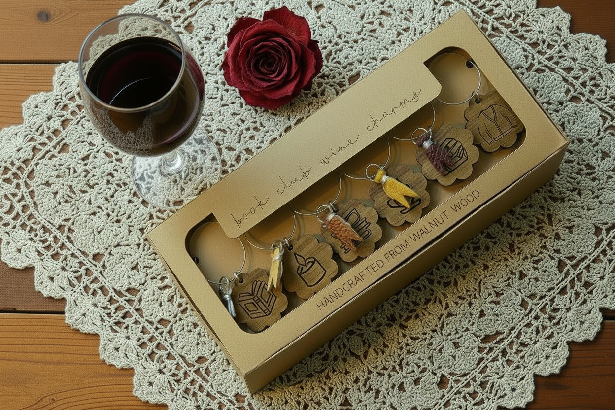 Each charm is laser-engraved on rich walnut wood and finished with sleek rings that easily attach to wine glass stems. Perfect for keeping track of drinks in style at gatherings, girls' nights, or intimate celebrations.